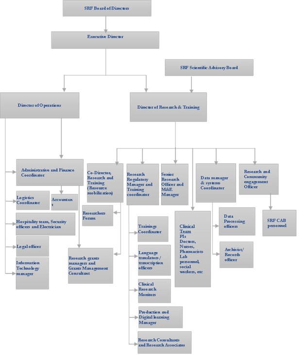 Our community advisory board supports our research projects but can also be utilized by researchers external to SRF. The SRF Community Advisory Board (CAB) is a strategic driver of SRF RTC’s mission, ensuring that research is community-centered, ethical, inclusive, and transformative. It bridges science with community realities, strengthening trust, accountability, and knowledge translation for a sustainable, healthy, and prosperous Africa. The Strategic goal of SRF-CAB is to foster community-driven, ethical, and impactful research that translates into sustainable health and development solutions for vulnerable populations in Africa. The CAB embodies SRF-RTC’s vision of a sustainable, healthy Africa by ensuring that community voices guide research, ethics are upheld, and evidence is translated into scalable, context-driven solutions. (Click to read more)