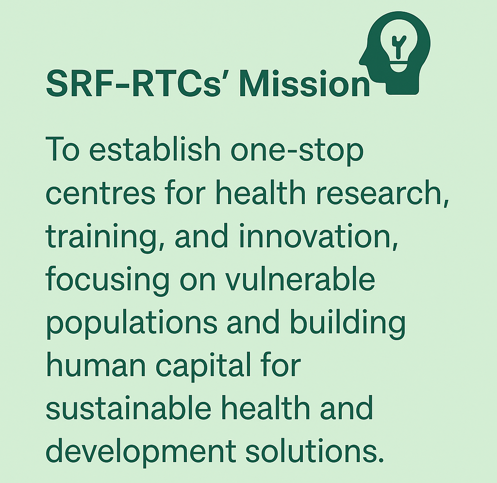 To establish one-stop centres for health research, training, and innovation, focusing on vulnerable populations and building human capital for sustainable health and development solutions.
